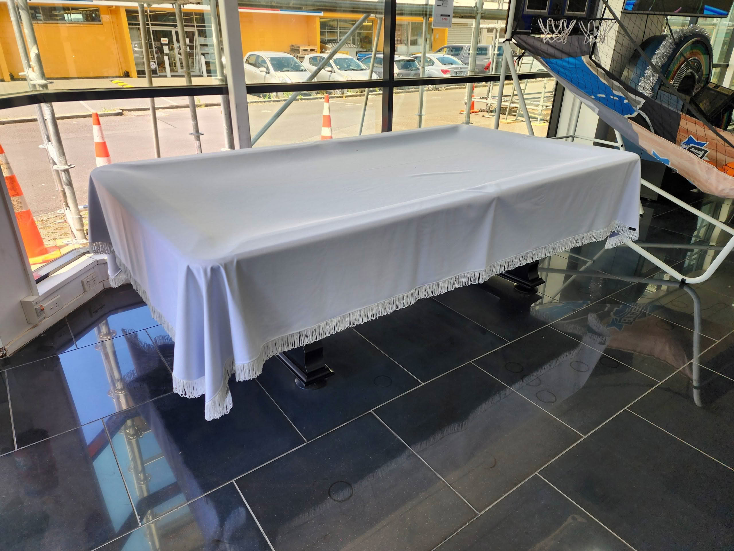 10ft Dust Cover – Polyester Grey with white fringing
